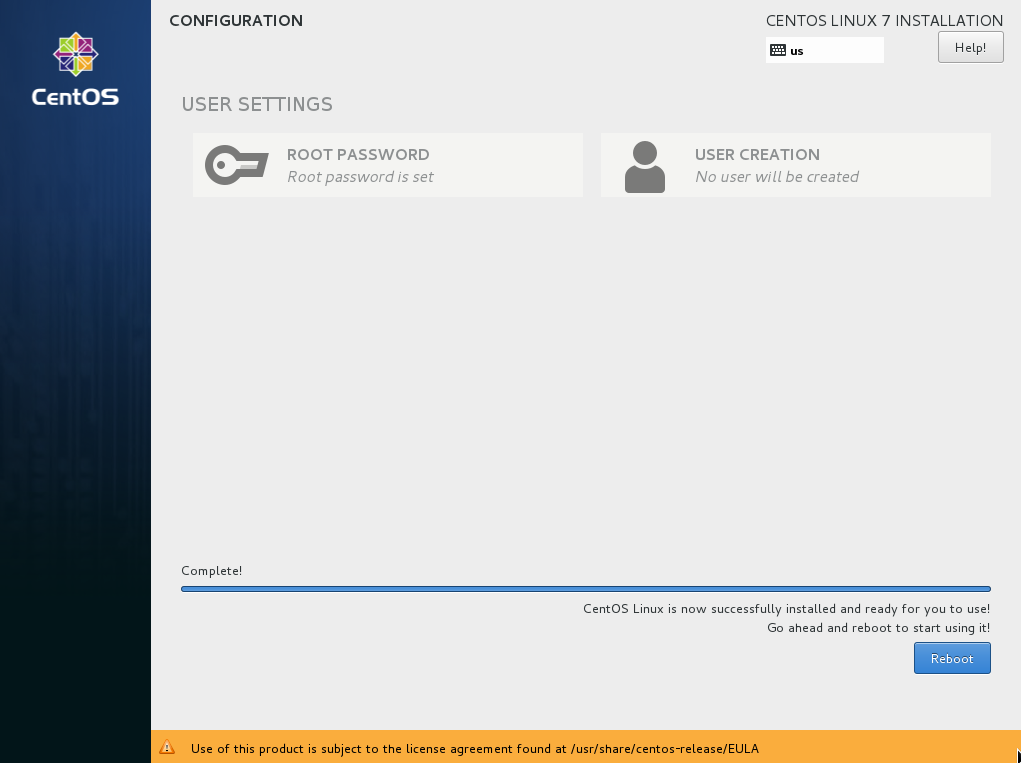 The system will reboot and come up to the login screen. Login in as user "root", using the root password that you set earlier.