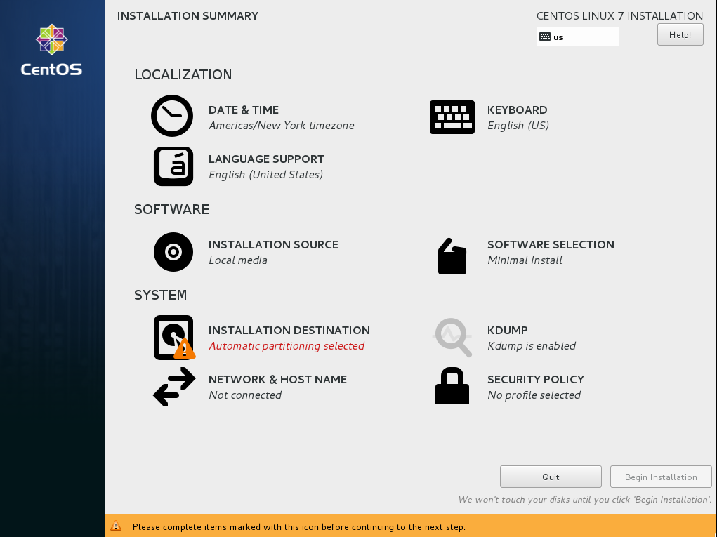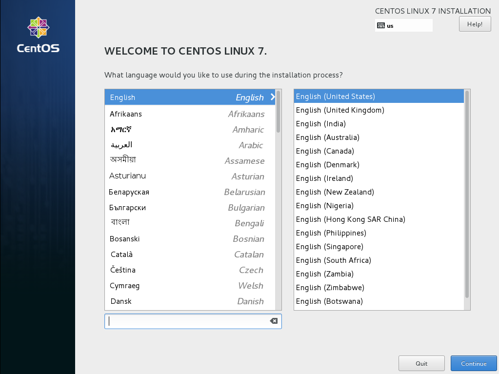 Boot the CentOS-7 installation media (DVD or USB key). You should wind up at the initial boot screen.