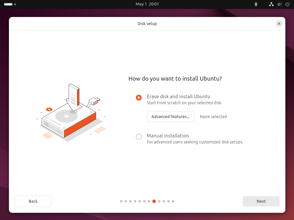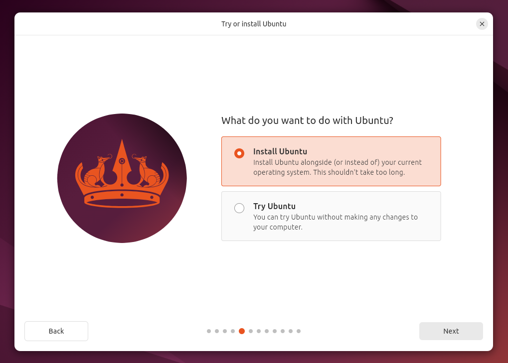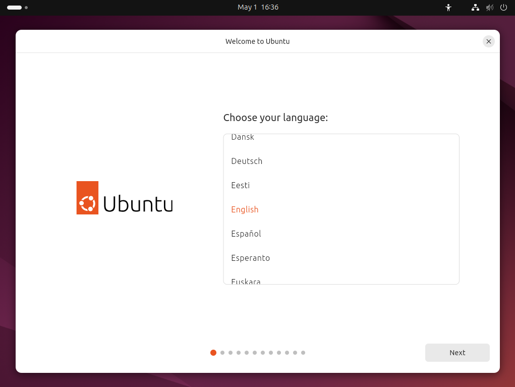Boot the Ubuntu Desktop 24.04 LTS Noble Numbat installation media (DVD or USB key). You should wind up at the initial boot screen.