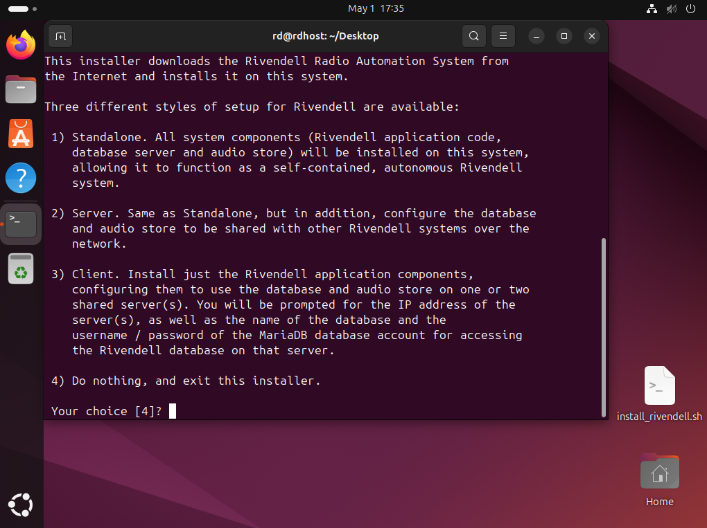 The installer supports three different "installation modes" for Rivendell, as follows: